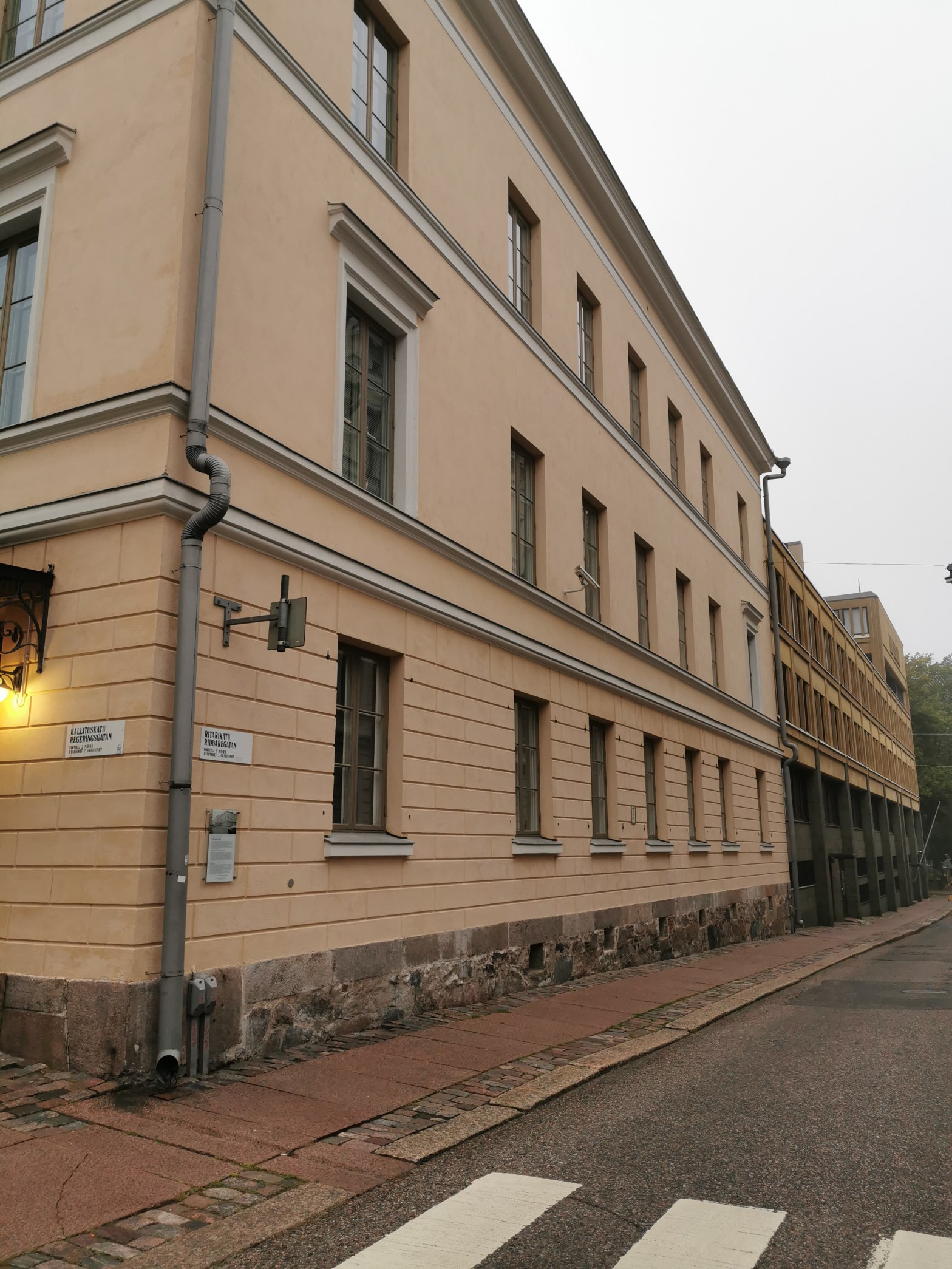 Entistä okranväristä kulmataloa Valtioneuvostoa vastapäätä kutsutaan entisten omistajien mukaan Pihlflykt-Willebrandin taloksi. Sen rakennutti 1843-44 asuintalokseen kaupunginkirurgi Fredrik Pihlflykt. Felix von Willebrandin omistukseen tontti siirtyi 1880-luvulla, jolloin sitä jatkettiin muuttamalla Pihlflyktin vaunuvajatkin asuinkäyttöön. Yliopistolle talo siirtyi 1910-luvulla. Seb. Gripenberg korotti sitä kerroksella ja nyt se palvelee entistettynä valtioneuvostoa. Kirurgi Pihlflykt esiintyy tarinoissa kaupungin haavurina eli välskärinä, joka tunnettiin nimellä Pihlsbubben. Kun hoitoon pyrkivä kolkutteli talon kulmassa olevaa ovea, kurkisti haavuri ensin ovessa olevasta luukusta, onko häiritsijä todella avun tarpeessa, ennen kuin avasi oven.