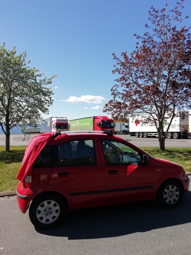 Porttikonki Uuden klinikan sisäpihalle.
